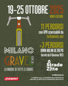 Milano Gravel Roads 2025 nasce grazie alla collaborazione con ilGenova1913, la Stazione delle Biciclette, Milano_in_bicicletta e Rossignoli Biciclette, con il supporto di Enervit.