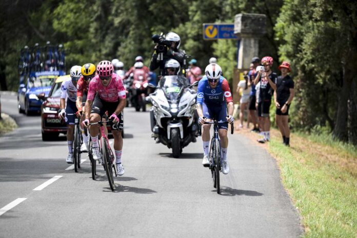 Una caduta in mezzo al gruppo ha rischiato di rovinare tutto. Complice l’asfalto bagnato alcuni corridori e fra questi Tim Merlier candidato alla vittoria di giornata, sono stati tagliati fuori dal disputare la volata finale.