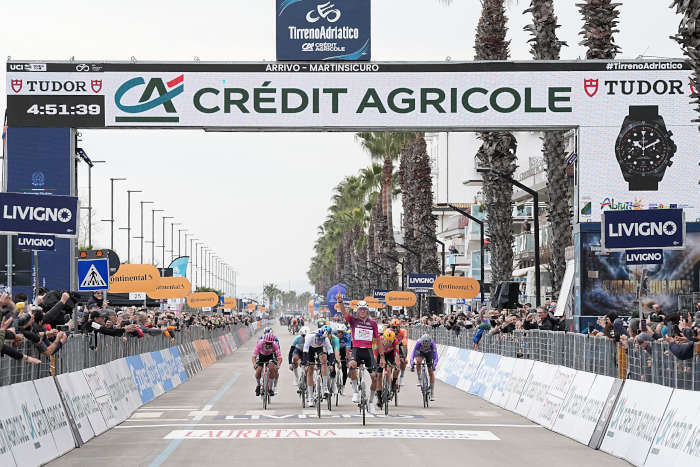 Mathieu Van der Poel (Alpecin-Premier Tech) ha vinto la quarta tappa della Tirreno Adriatico Crédit Agricole, la Tagliacozzo-Martinsicuro di 213 km. Giulio Pellizzari (Red Bull – Bora – Hansgrohe) e Tobias Halland Johannessen (Uno-X Mobility) si sono classificati rispettivamente al secondo e al terzo posto. Giulio Pellizzari è la nuova Maglia Azzurra di leader della Classifica Generale.