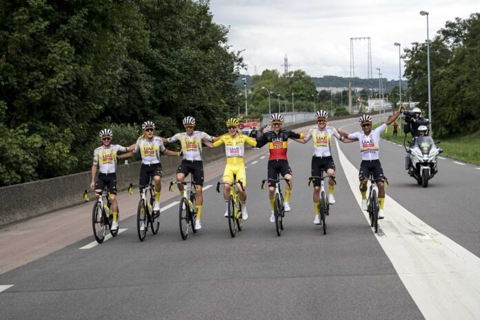 la maglia gialla al terzo e ultimo passaggio sulla salita di Montmartre. Pogacar fa ancora spettacolo e vuole fare il Cannibale e acchiapparsi in maglia gialla anche l’ultimo traguardo parigino. Dopo aver selezionato il gruppo andando a tirare come una moto sui primi due passaggi a Montmartre, si ritrova con un gruppetto di talentuosi; Van Aert, appunto, Ballerini, Mohoric, Jorgenson e Trentin. Bravi gli italiani che a fine Tour si fanno vedere!