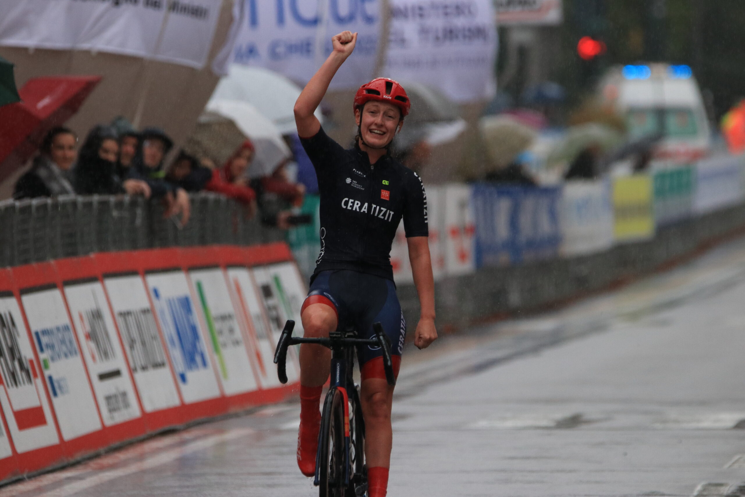 La transalpina Kerbaol, 23 anni, vince la Tre Valli Varesine riservata alle donne. La gara, iniziata alle 9 del mattino prima della corsa maschile annullata a causa delle condizioni proibitive, ha vissuto i momenti cruciali all’ultimo giro quando la francese è scattata insieme a Silvia Persico. La Kerbaol è poi riuscita a staccare l’azzurra sulla salita dei Ronchi e a vincere in solitaria. Terza la favoritissima, la tedesca Lippert.