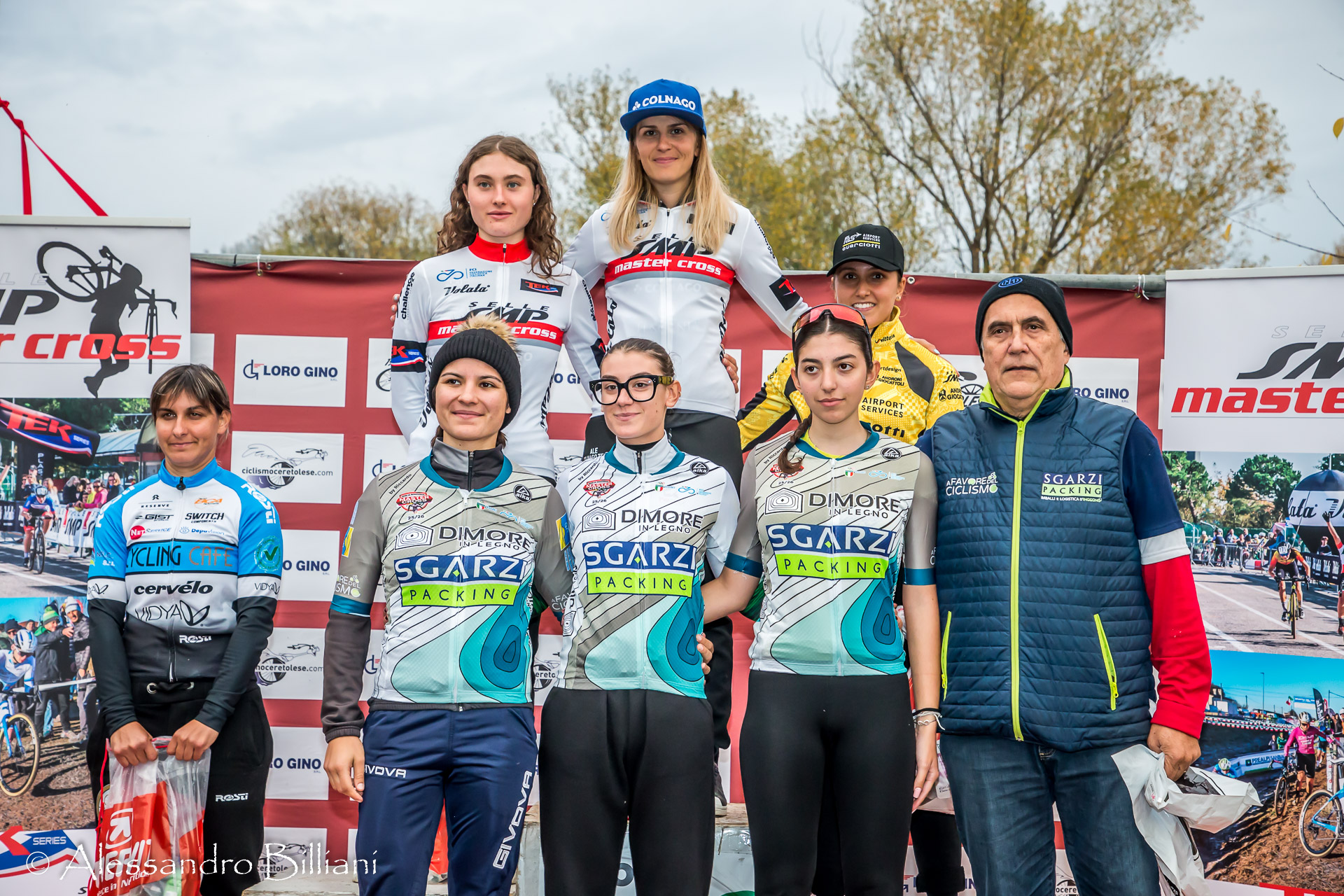 Anche la gara femminile ha avuto una padrona assoluta. La vice campionessa italiana Elite Rebecca Gariboldi (Ale Colnago Team) si è subito messa a tenere alta l’andatura e, dopo la fase iniziale, è riuscita a distanziare tutte le avversarie. Secondo posto per la giovane juniores trentina Nicole Azzetti, compagna di squadra, che ha confermato l’ottimo stato di forma che le ha consentito di essere convocata dal Commissario Tecnico Daniele Pontoni per i campionati europei della settimana prossima. Terza piazza per la trevigiana Beatrice Fontana (Fas Airport Guerciotti). Per Nicole Azzetti è arrivata anche la maglia di leader di categoria nel Selle Smp Master Cross.