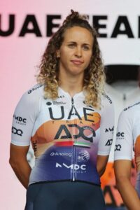 Silvia Persico (UAE Team ADQ) nata ad Alzano Lombardo classe 1997: «La partenza da Bergamo è sempre stato il sogno fino da quando ero piccola, vedremo come andrà, sicuramente sono qua per supportare Elisa (ndr Longo Borghini) e vedremo giorno per giorno. Sono abbastanza tranquilla, un poco di pressione ma bisogna evitare di pensare e pedalare!».