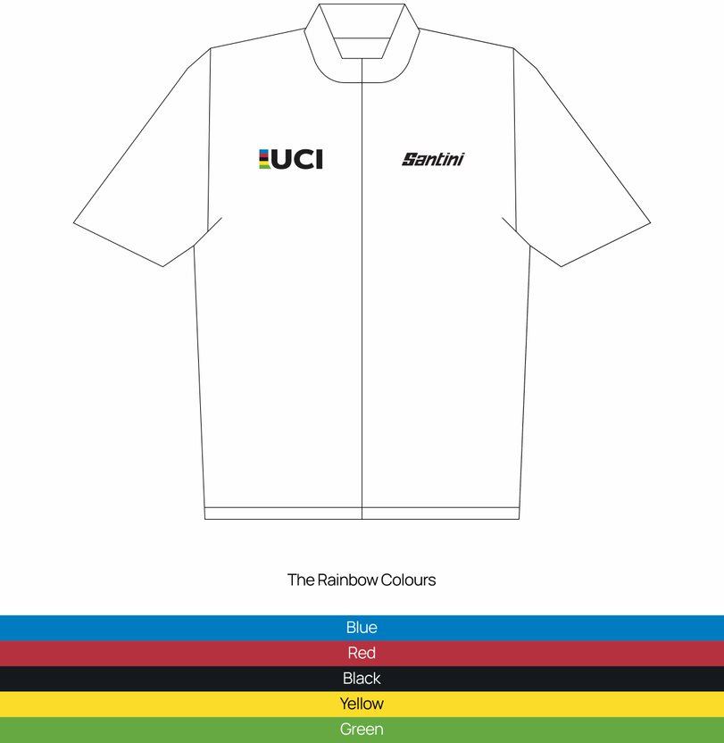Santini Cycling supporta UCI e le sue attività dal 1988, realizzando l’iconica maglia arcobaleno agli atleti che vengono incoronati Campioni del Mondo UCI in tutte le discipline ciclistiche. L’azienda italiana fornisce inoltre le maglie dei leader delle varie classifiche dell’UCI Women’s WorldTour, nonché le classifiche generali delle Coppe del Mondo UCI per il para-ciclismo su strada, il mountain bike eliminator, i trials, il ciclismo artistico e il cycle-ball.