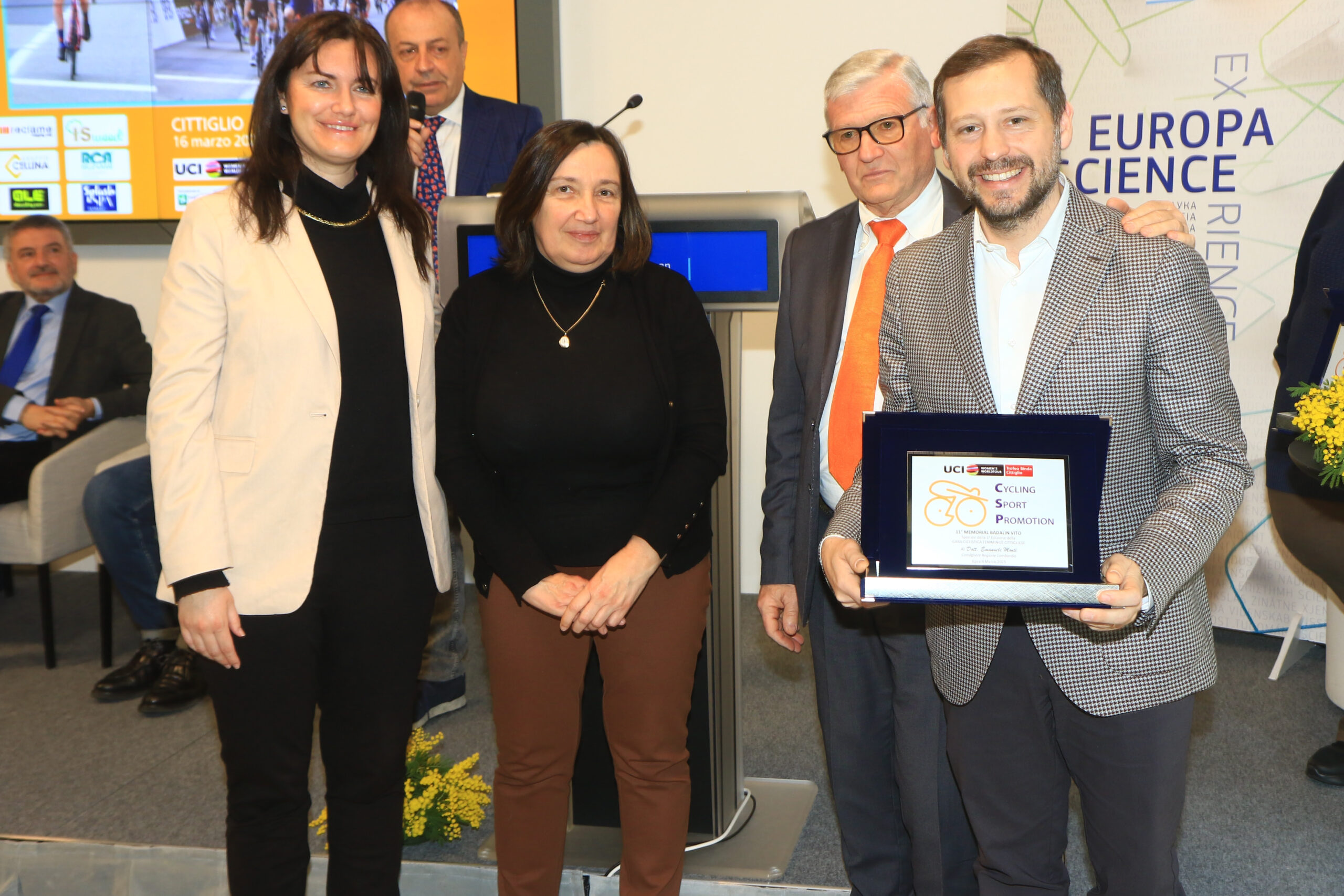 Il Premio alla memoria di Vito Badalin, storico sponsor della prima edizione della gara femminile cittigliese; il ‘Trofeo Lampadari Badalin’ è stato assegnato ad Emanuele Monti, consigliere regionale e da sempre amico delle gare Cycling Sport ProMotion: “Sono davvero emozionato e ringrazio per il riconoscimento – ha detto – devo dire che dopo anni mi sono appassionato davvero a questi eventi e mi sento davvero parte di questa organizzazione”.